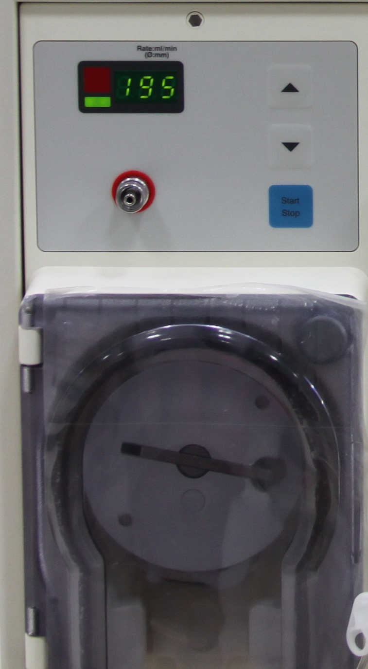 This is a picture of the blood pump from a Fresenius 4008S machine and the number '195' in the picture is the pump speed.